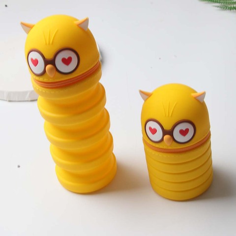 Neuheit Cartoon mit großer Kapazität und einziehbarem Geschenk-Feder mäppchen aus Silikon mit Reiß verschluss